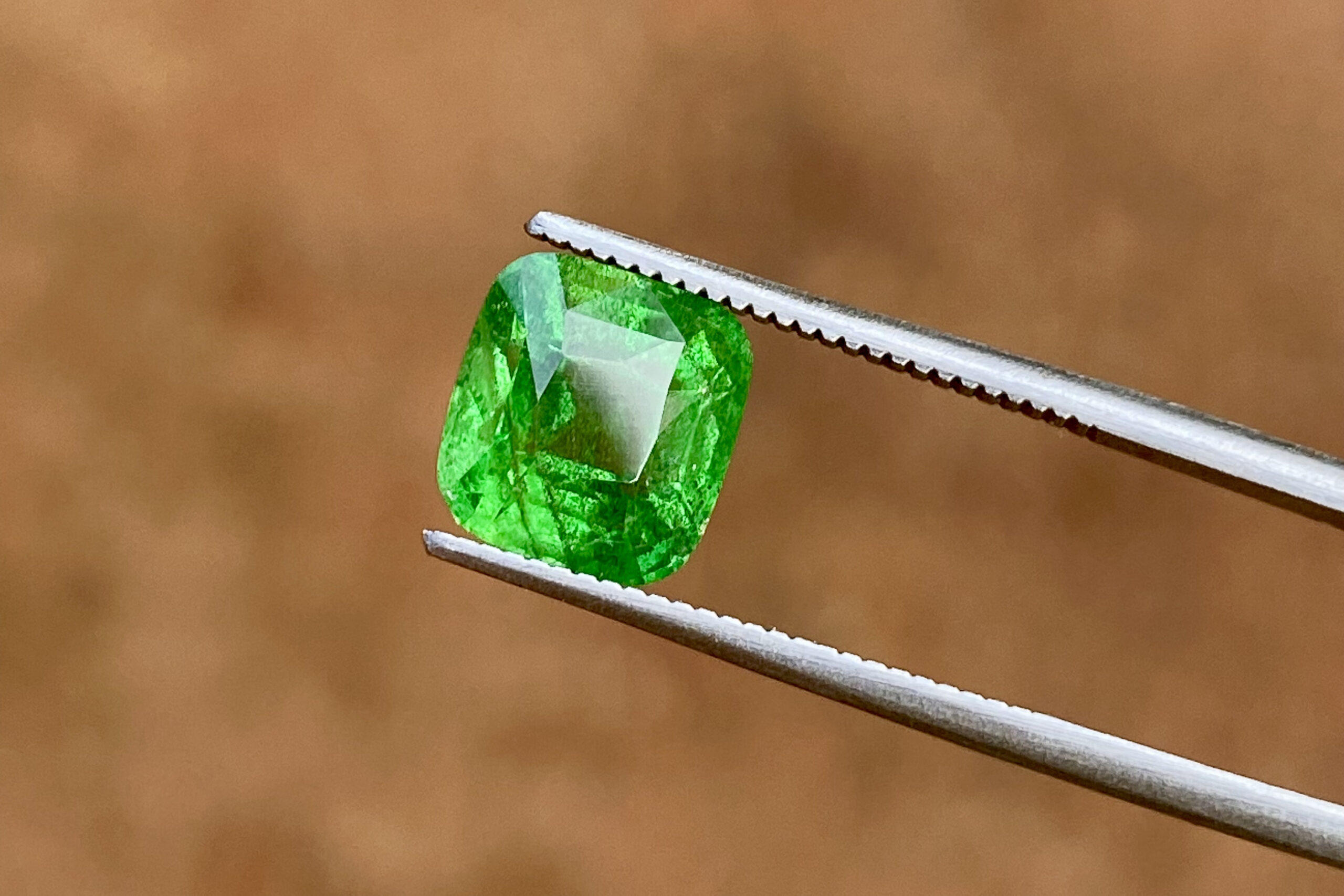Tsavorite garnet cushion shape, 2.74 carats